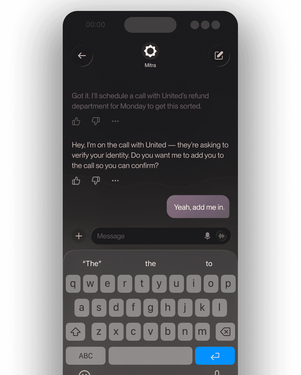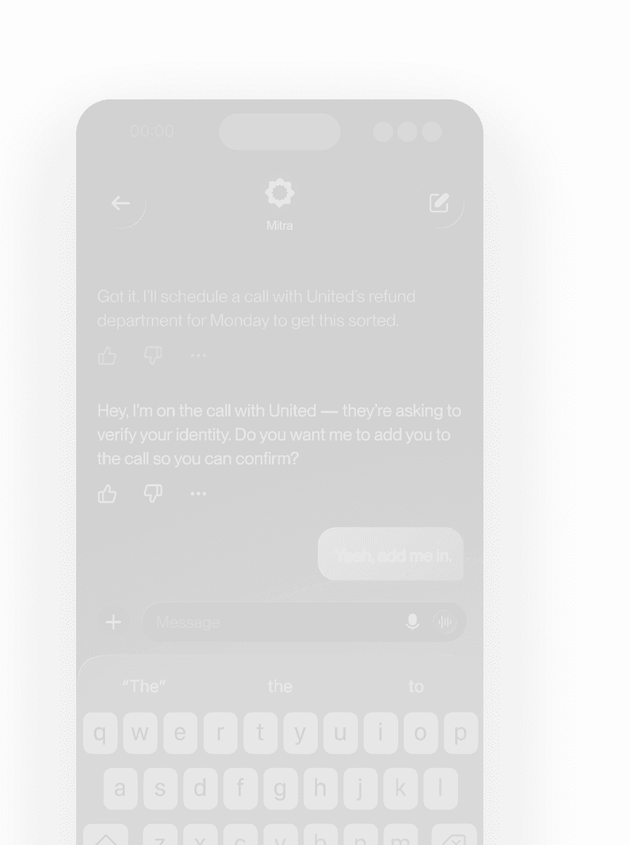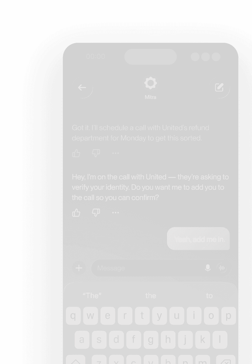 Mitra has real conversations on any topic, navigates phone systems automatically to reach the right person, and represents you exactly how you want.